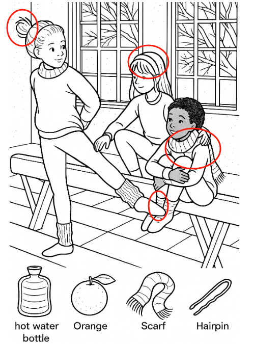 You’re chilling in a frosty gym, watching friends warm up—literally—and suddenly, you’re challenged: can you spot a hot water bottle, an orange, a scarf, and a hairpin stashed in plain sight? These playful hunts aren’t just for kids; they flex your observation muscles, improve focus, and give your mind a fun break from screens. Ready to uncover every cozy winter essential tucked into this wintry scene? Let’s dive in!