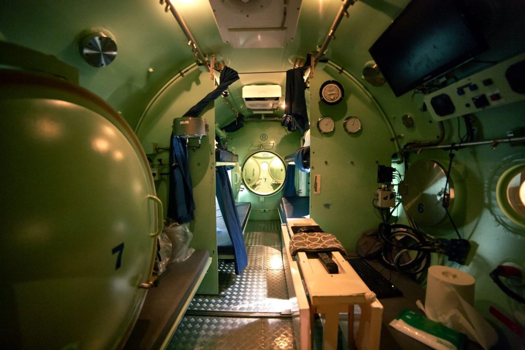 Instead of decompressing like recreational divers – which would take them days to reach the surface – saturation divers use pressurized diving bells and decompression chambers.