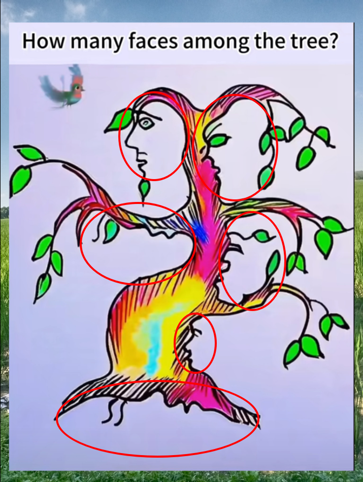 This vibrant tree is more than just a clever illustration—it’s a mirror for how we see the world. Some people spot the faces instantly. Others stare for minutes before one suddenly pops out. That’s the fun of it. Our brains don’t just see what’s there—they see what they’re ready to see.