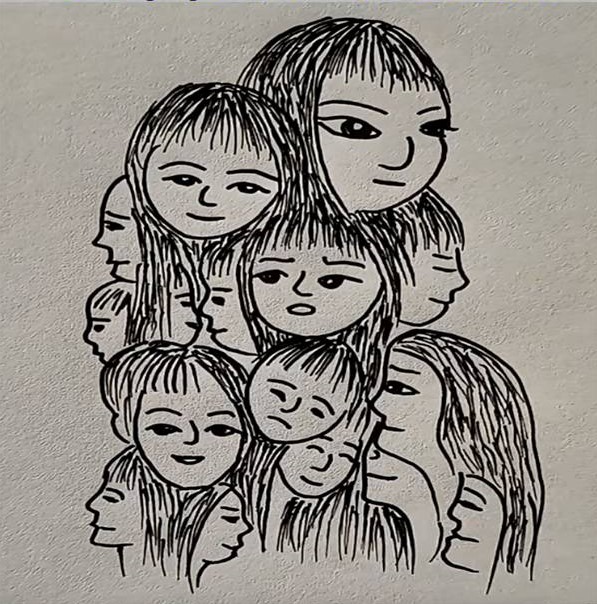 The artist’s skill in layering faces with overlapping lines and strategic shading creates an immersive visual puzzle. By balancing clarity and obscurity, the drawing invites viewers to interpret and find meaning.